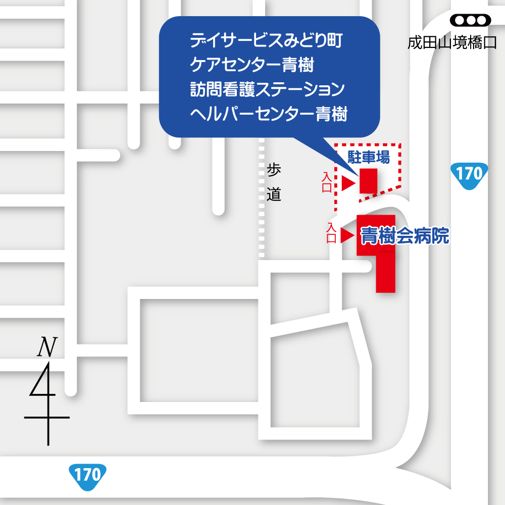 ※青樹会病院敷地内、駐車場横に施設はあります。